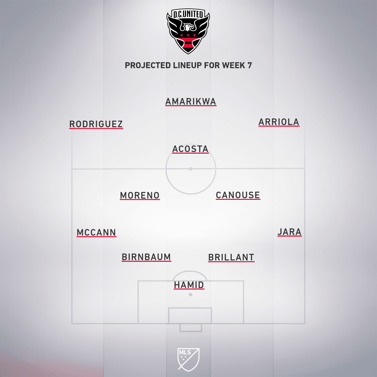 Así formaría D.C. UNITED en el encuentro del martes por la noche: