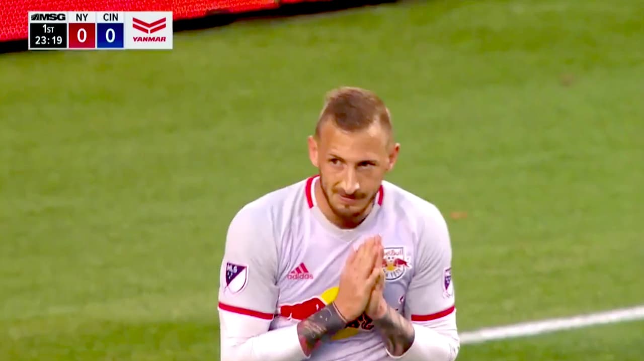 Amro Tarek filtró un gran pase a Daniel Royer que remató de volea, pero el esférico se negó a entrar a la portería. Los Red Bulls estuvieron cerca de abrir el marcador.