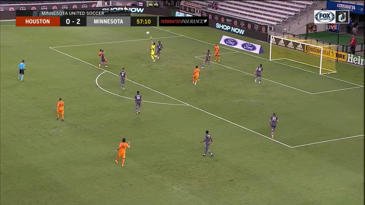 El atacante colombiano define con su pierna derecha para acercar al Dynamo 2-1 ante su ex equipo, el Minnesota United