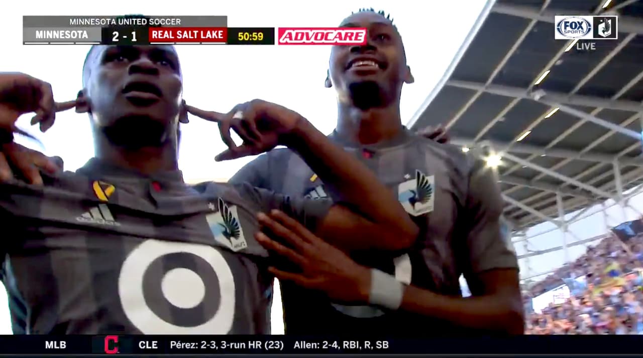 Darwin Quintero recupera el balón y desde fuera del área adelanta a Minnesota United