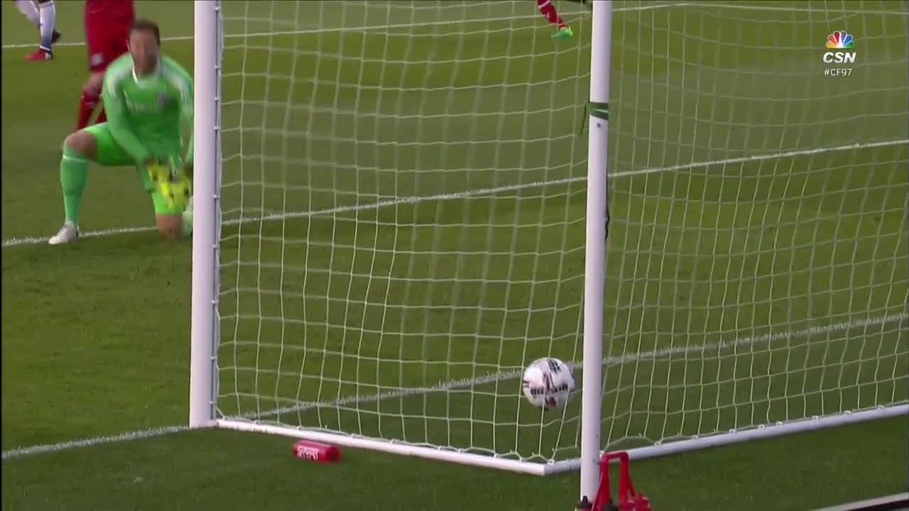 El atacante ghanés deja sin opciones al arquero Chris Seitz.
