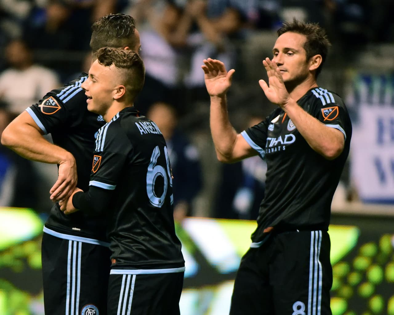 Los Whitecaps cometieron el error de dejar solo al astro italiano Andrea Pirlo en mitad de cancha, quien mandó una belleza de pase al vacío para Angelino. El español, entonces cruzó la pelota al área donde Frank Lampard simplemente fusiló de primera intención para darle la ventaja a los visitantes.
