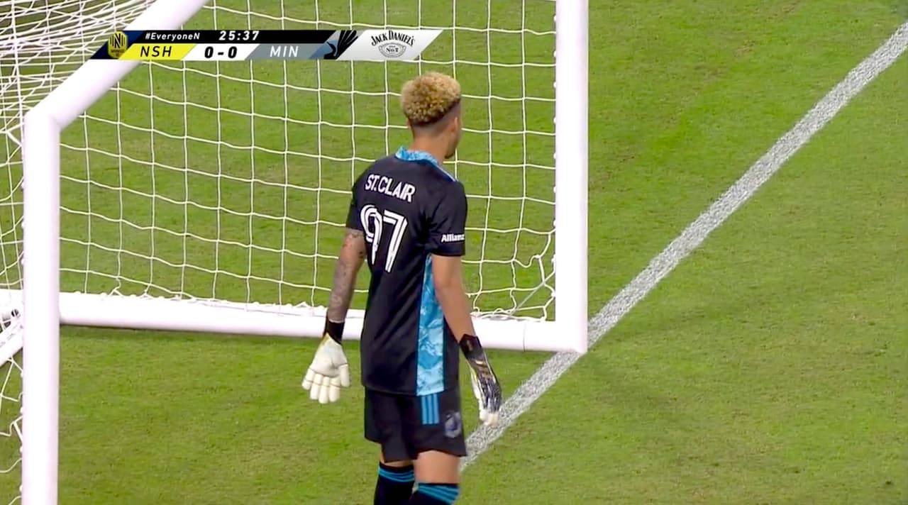 El delantero de Nashville SC, Alex Muyl, no pudo vencer en un mano a mano al cancerbero de Minnesota United y se perdió el primer gol de la noche.