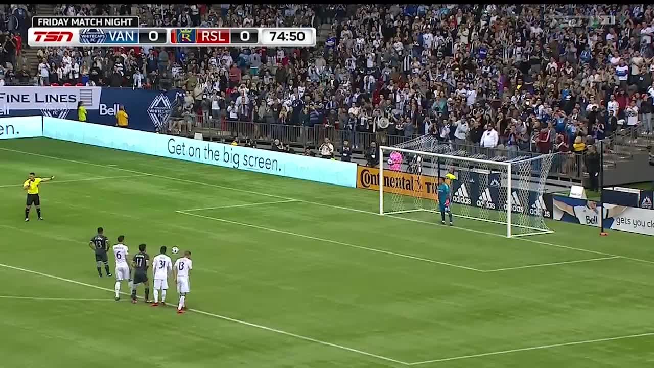 El uruguayo marca el 1-0 para Vancouver Whitecaps sobre Real Salt Lake, pero luego es sacado del partido, al ver la segunda amarilla, tras quitarse la camiseta.