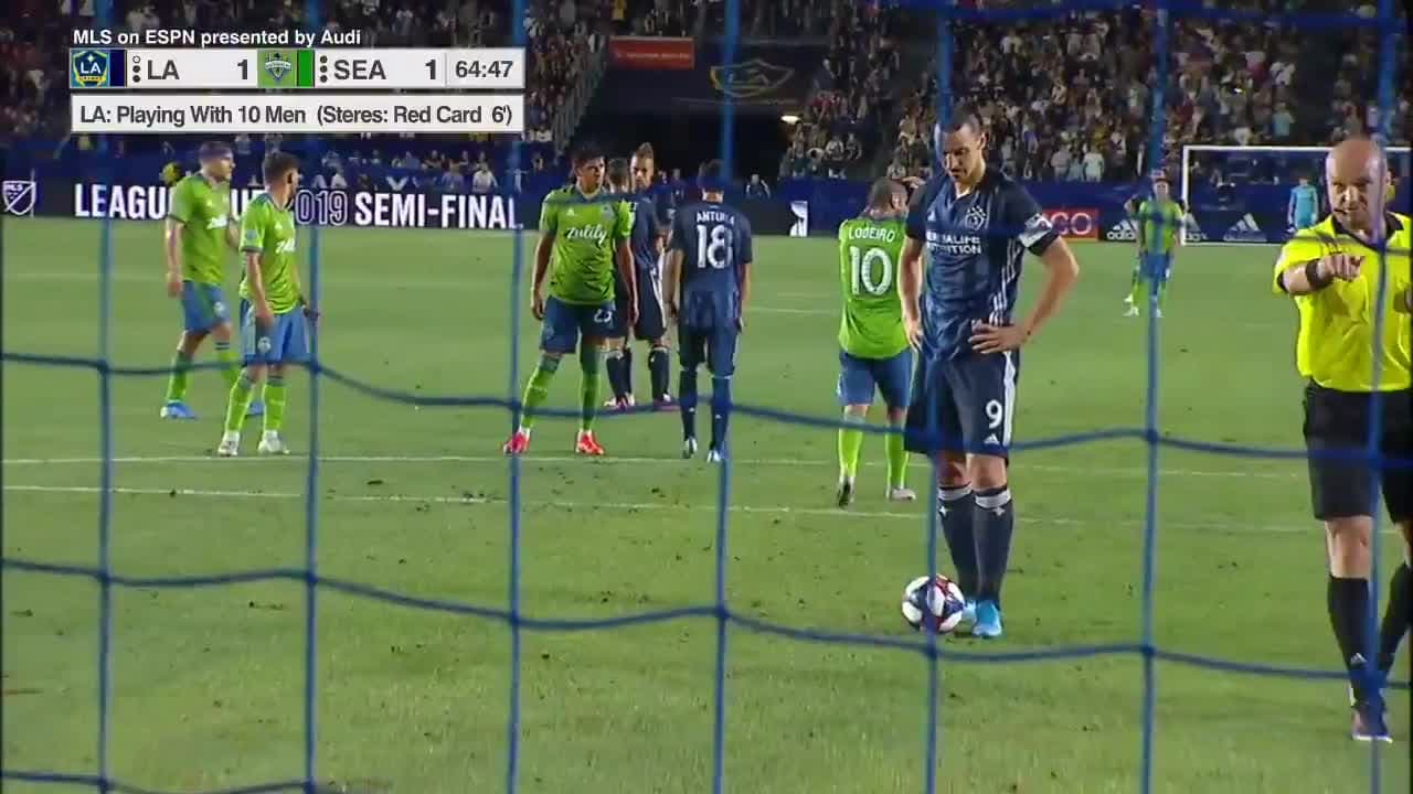 Desde el punto penal, Zlatan fusila la red de Seattle y coloca arriba a su L.A. Galaxy