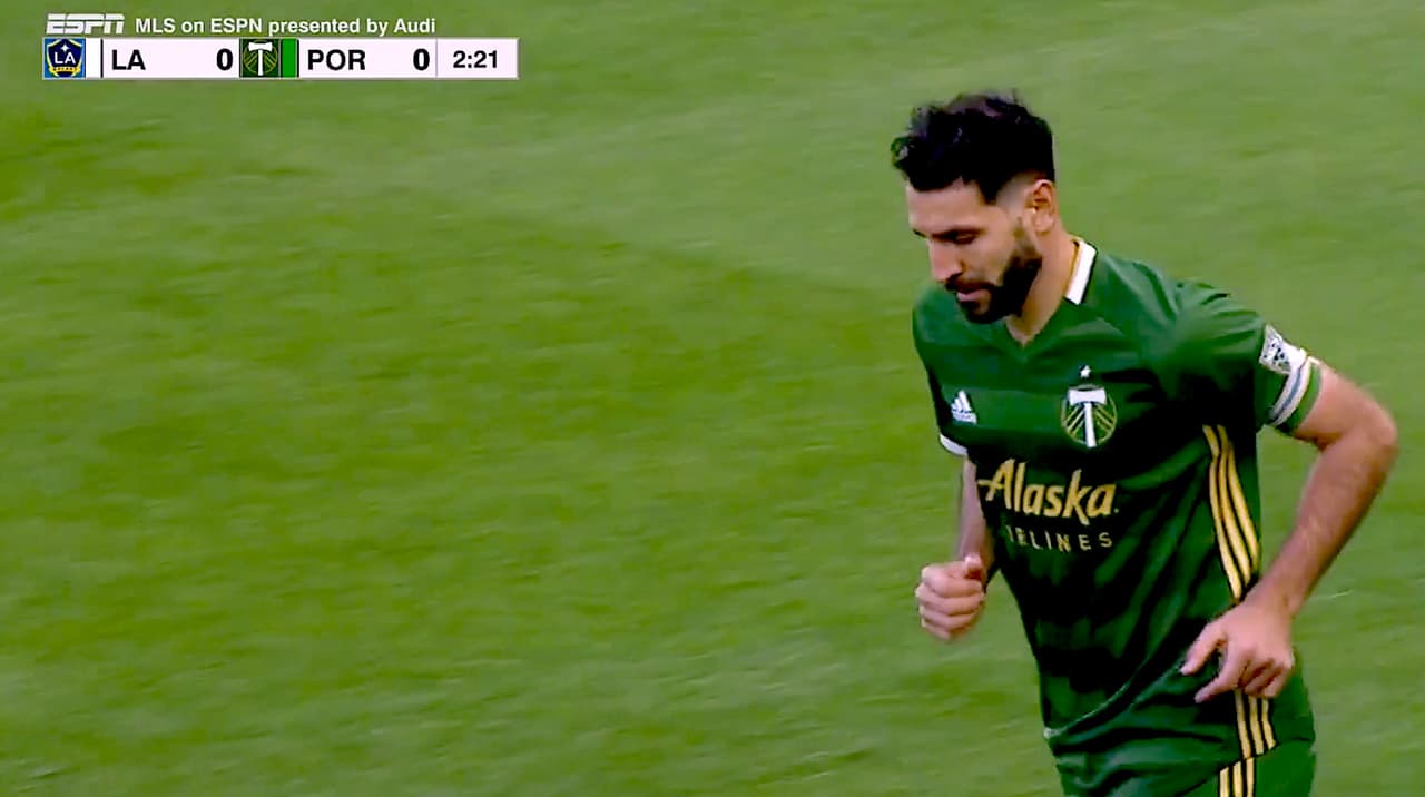 Apenas al minuto tres del partido Diego Valeri disparó a gol, pero el portero David Bingham estuvo atento y atajó el balón.