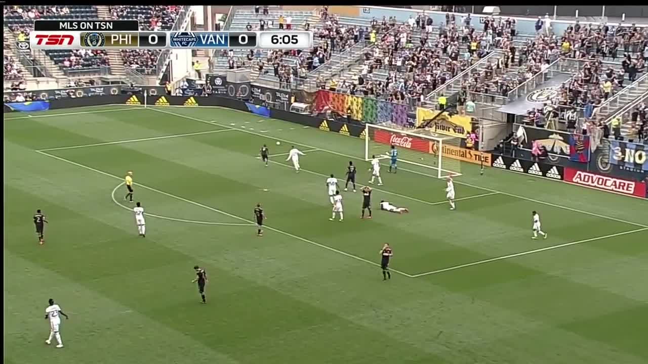 Disparo de media vuelta que roza la portería, Ilson Pereira estuvo cerca de adelantar a Philadelphia