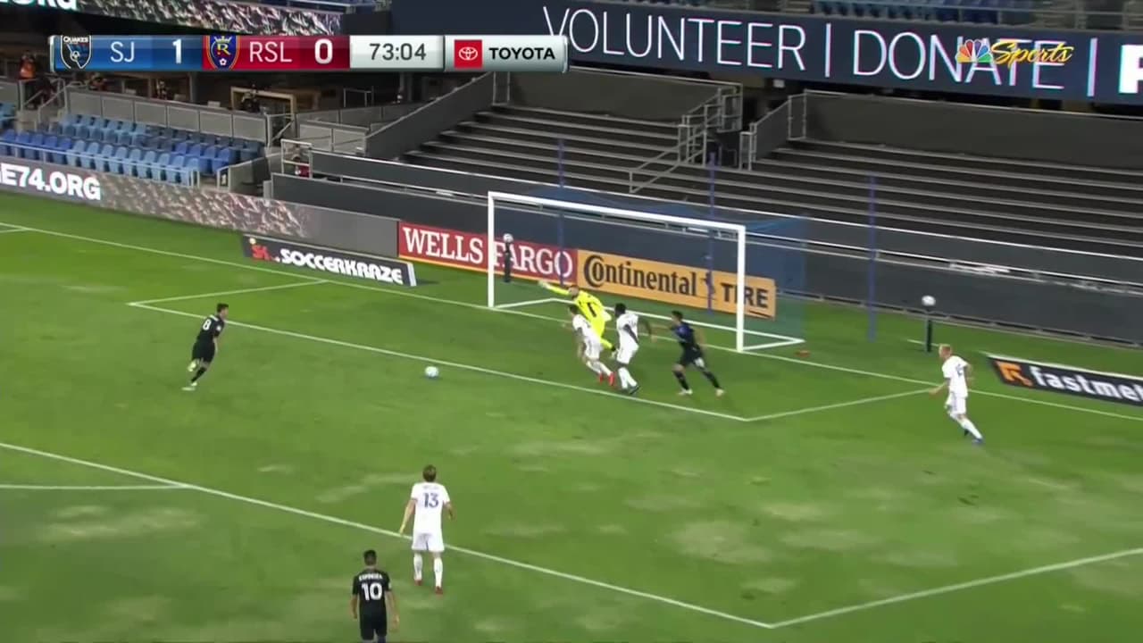 San José luego duplicó su ventaja en el minuto 74 a través de Wondolowski, quien puso el 2-0 al rematar un centro bajo de Shea Salinas desde el flanco derecho. Fue un gol clásico del jugador de 37 años, ya que se dirigió como un fantasma al poste trasero y se encontró libre de los defensores de RSL.