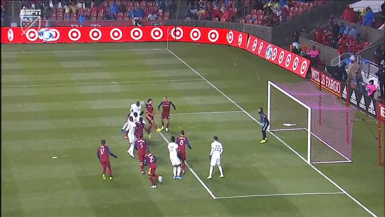El mediocampista sudamericano conecta un tiro de esquina cobrado por el argentino Sebastián Blanco para igualar el marcador 1-1 ante Real Salt Lake