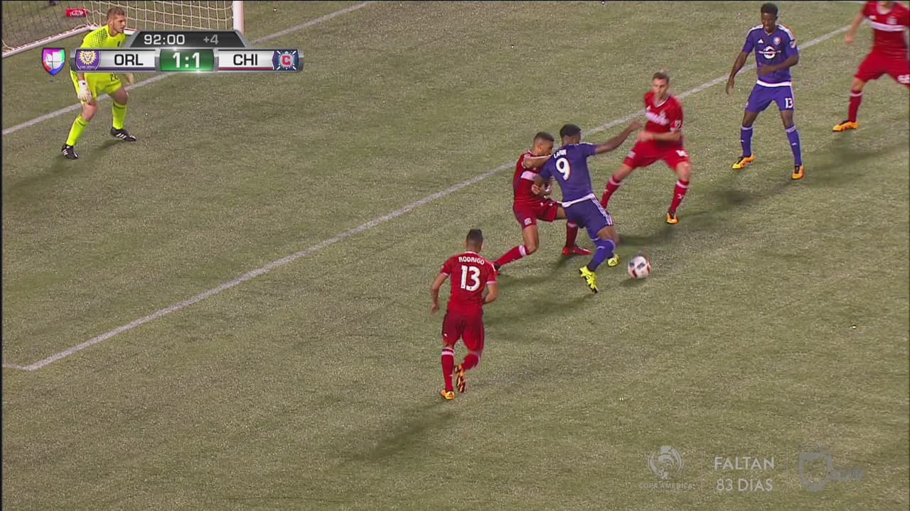Sobre el tiempo, Larin es jalado en el área por Kappelhof en el minuto 91 lo que pudo significar la victoria para Orlando.
