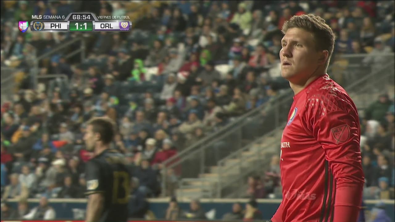 El arquero Joe Bendik ataja con el rostro un poderoso disparo de Philadelphia Union