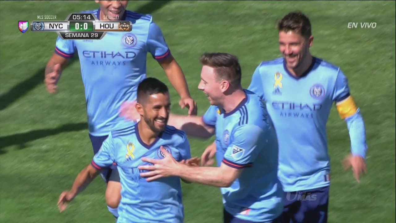 La reacción naranja no se hizo esperar, y fue gracias a una viveza de Mauro Manotas al minuto 16. Houston cobró rápidamente una flata en las fueras del área local, y el colombiano pilló totalmente desprevenida a la defensa del NYCFC y al portero Sean Johnson.