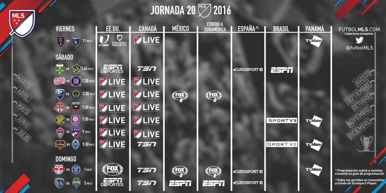 A continuación encontrarás los horarios y canales de televisión en dónde ver los partidos de la MLS este fin de semana: