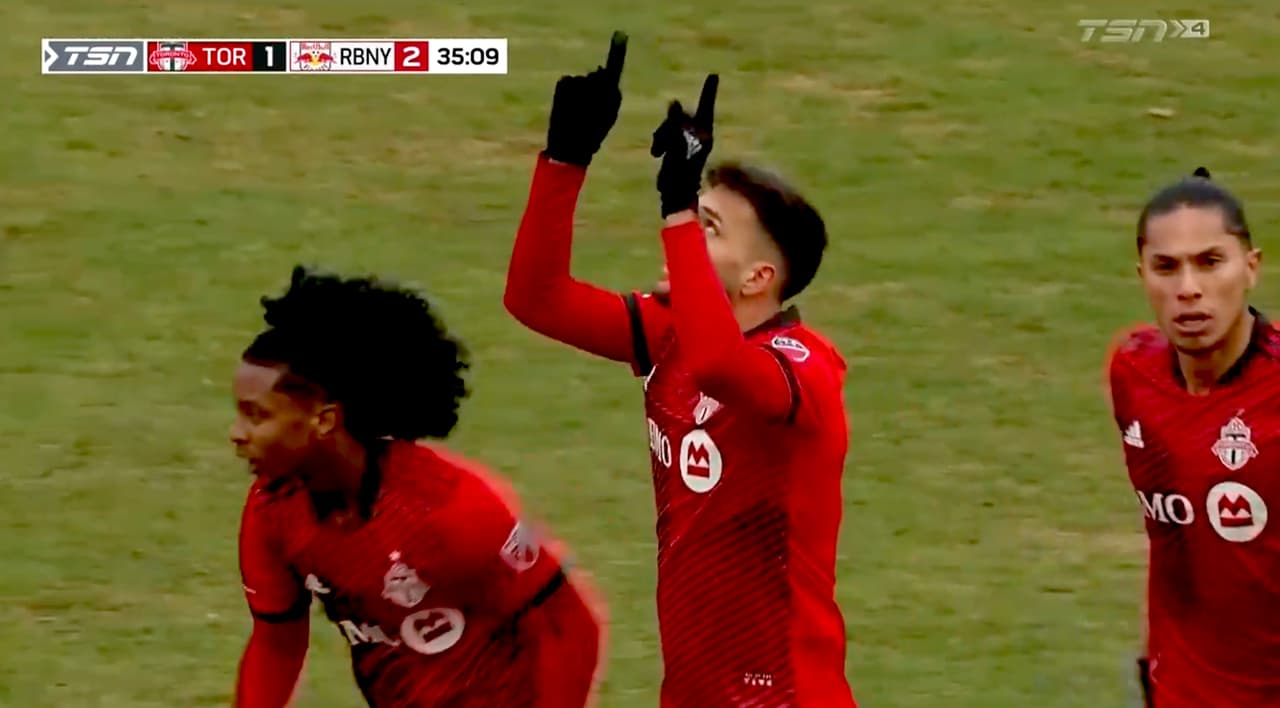 Toronto FC acortó el marcador por 1-2 ante New York Red Bulls a través de una gran definición de Jesús Jiménez al minuto 35 de la primera parte.