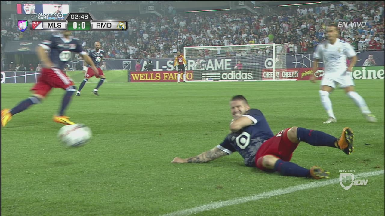 Las Estrellas de la MLS se perdieron el empate luego de una brillante combinación entre Giovani dos Santos y Dom Dwyer que no pudo concretar Nemanja Nikolić. El remate del húngaro dentro del área se estrelló en la parte externa de la red.