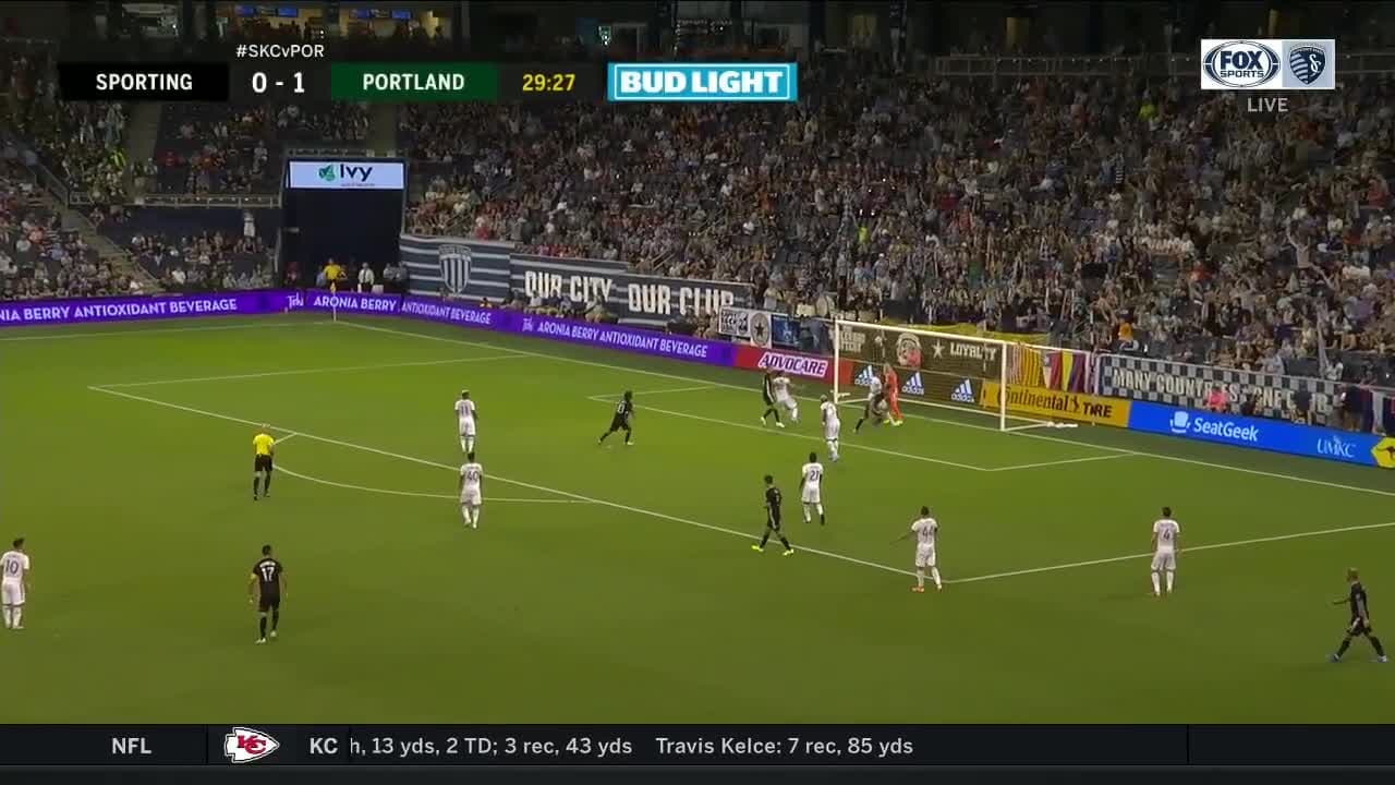 El húngaro Krisztián Németh se cola en el área y de cabeza le da el empate a Sporting KC