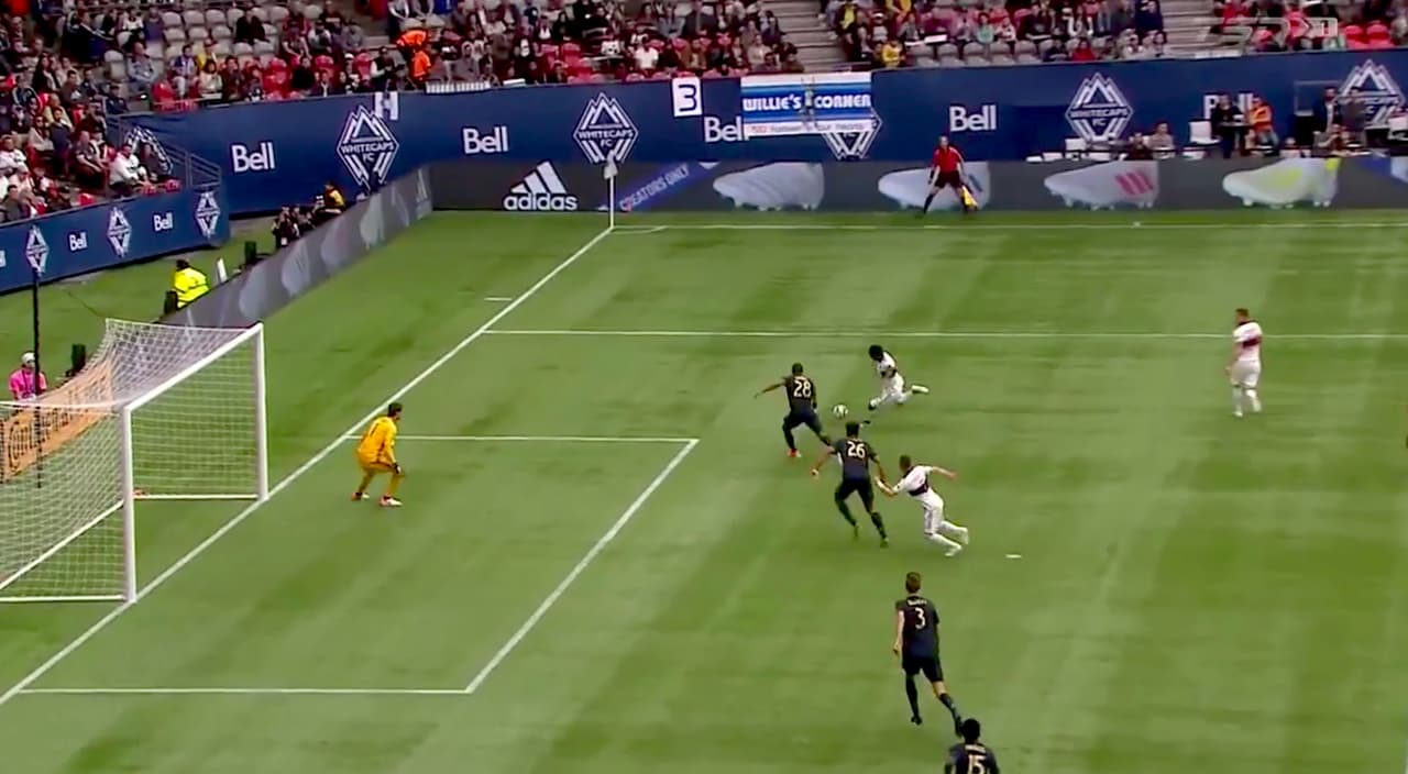 Los Whitecaps estuvieron cerca de marcar el primer gol del partido con un potente derechazo de Yordy Reyna, pero el esférico se estrelló en el palo.