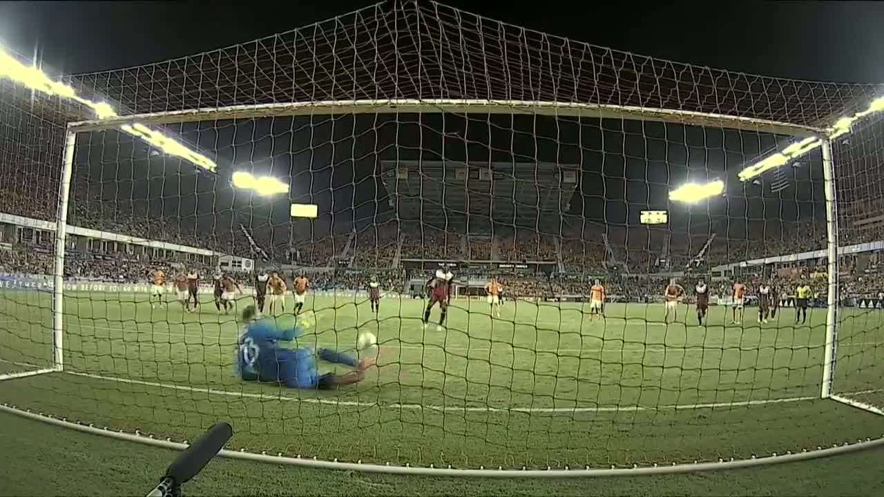 El portero Joe Willis se pone la playera de héroe al atajarle un penal a Roland Lamah