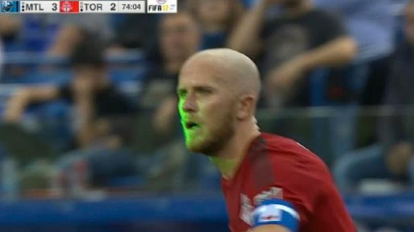 El color verde del láser comenzó a verse sobre el terreno de juego sobre el minuto 68, pero fue en el 74' cuando el haz de luz impactó en la cara de Michael Bradley, capitán de Toronto y autor del segundo gol del conjunto visitante.