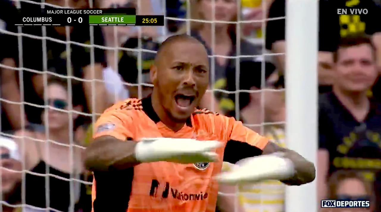 El delantero de Seattle Sounders intentó sorprender al portero con un zapatazo desde fuera del área, pero el cancerbero Room estuvo atento y evitó la anotación.