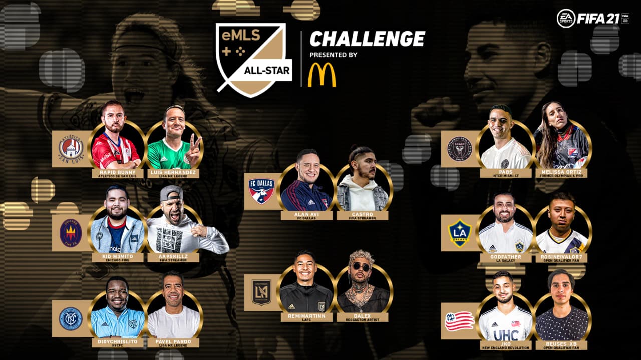 Jugadores profesionales de eMLS se unirán a influencers, celebridades, glorias de la Liga MX y MLS -como Luis Hernández y Pavel Pardo- y gamers aficionados para el tercer eMLS All-Star Challenge, presentado por McDonald’s.