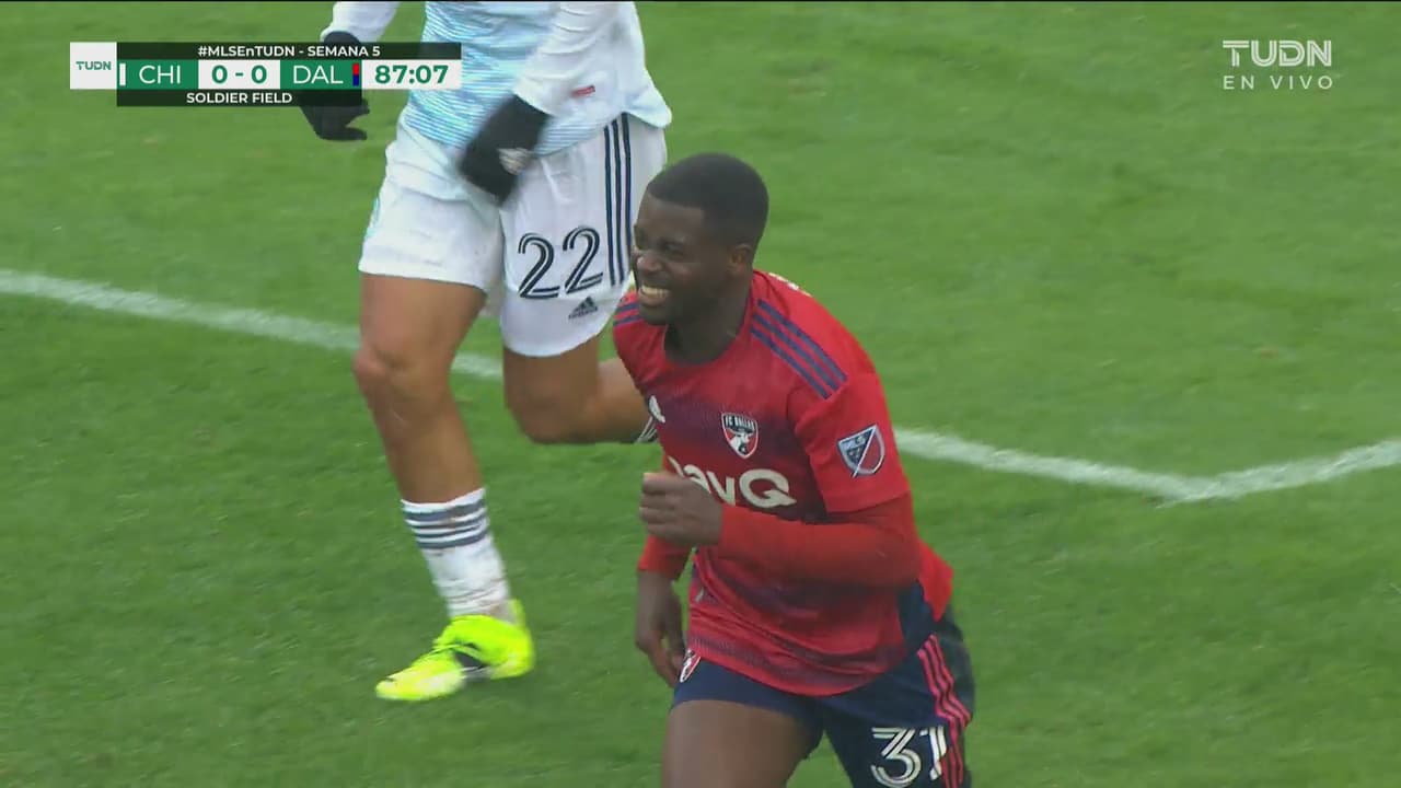 El de FC Dallas le quita la potencia a su disparo ya estando frente a la portería y sin marca.