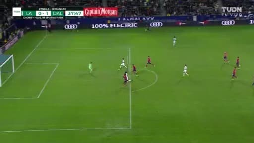 Balón filtrado y el mexicano no puede techar al portero Maurer para anotar, al minuto 38.