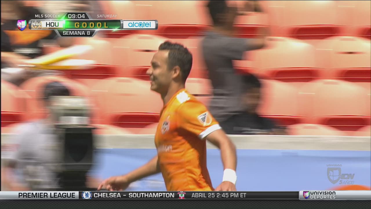 El artillero mexicano abrió la cuenta de penal y el hondureño Alberth Elis marcó el segundo de Houston, que se impuso 2-0 a los Quakes.