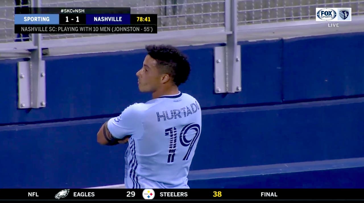 El francés Amadou Dia puso un gran centro y Erik Hurtado mandó el balón a las redes con un sublime derechazo para que Sporting Kansas City marcara el 2-1 ante Nashville SC.