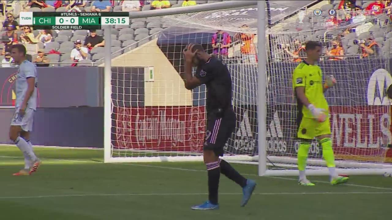 Centro por derecha del ‘9’ del Inter Miami para su hermano a primer poste, quien no aprovechó al 39’.