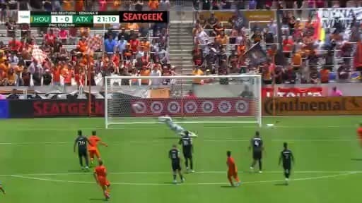 El guardameta del Austin está en plan grande al hacer un gran lance para evitar otro gol de Houston al 21'.