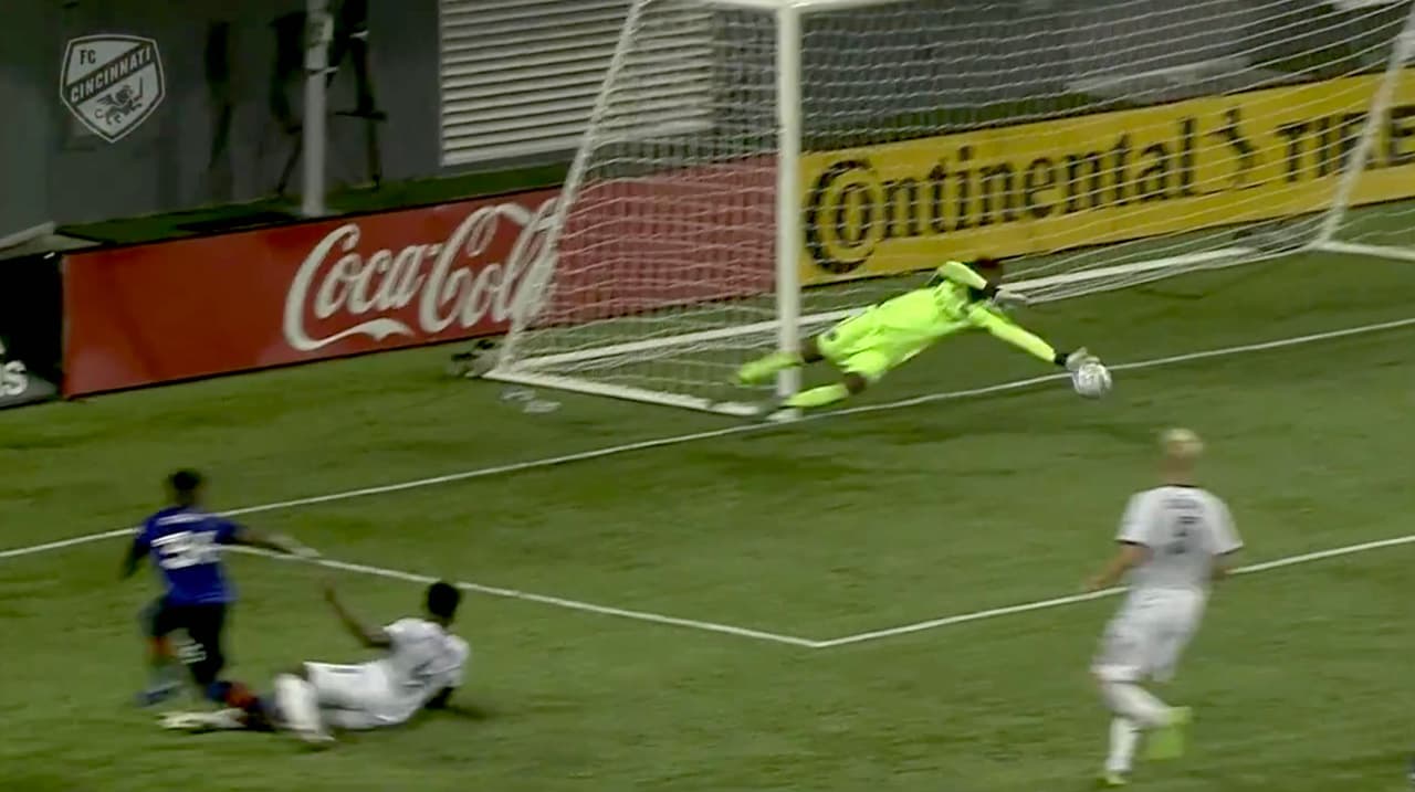 Joseph-Claude Gyau puso a prueba al cancerbero Andrew Blake con un peligroso disparo cruzado, la salvada evitó la derrota de Philadelphia Union ante FC Cincinnati.