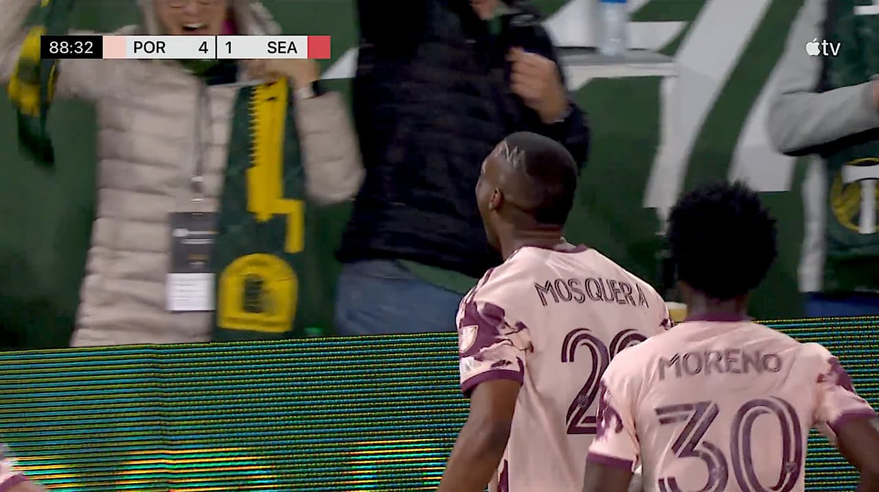 Portland Timbers marcó el 4-1 ante Seattle Sounders a través de un remate de Juan David Mosquera al minuto 89'