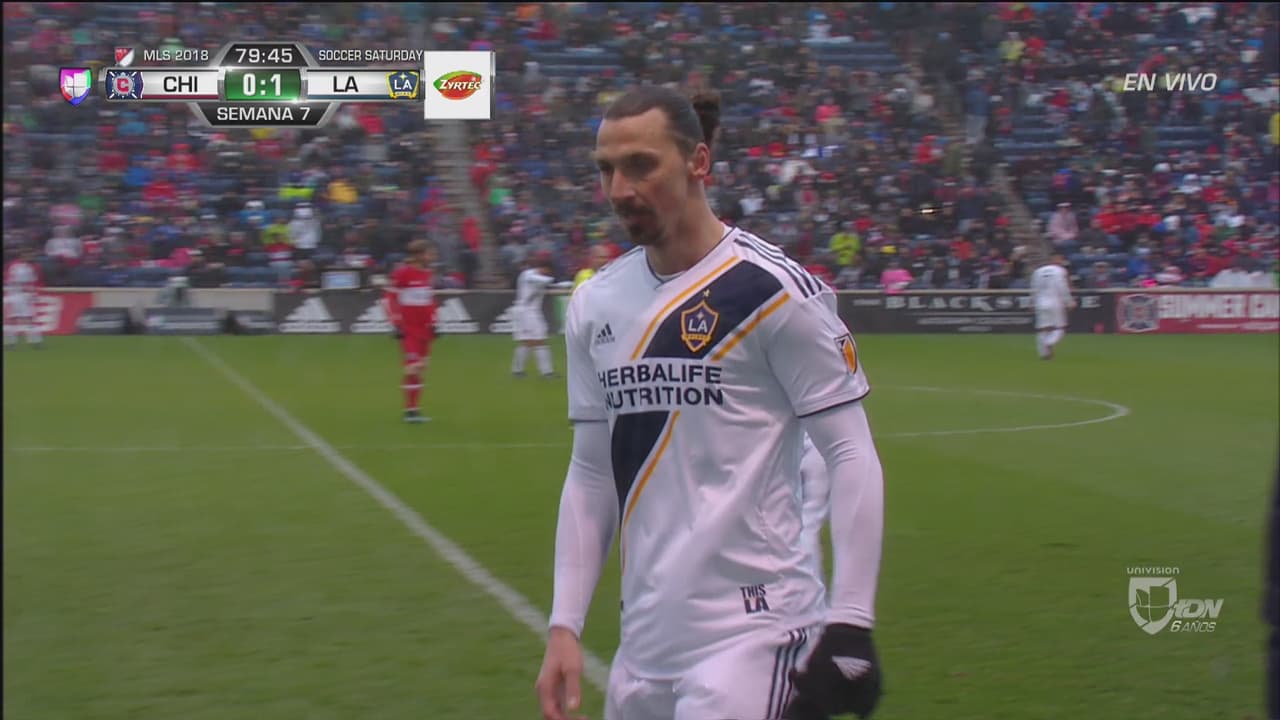 El delantero sueco es reemplazado por Emmanuel Boateng en el minuto 80, tras anotar el gol de la ventaja 1-0 del L.A. Galaxy sobre Chicago Fire