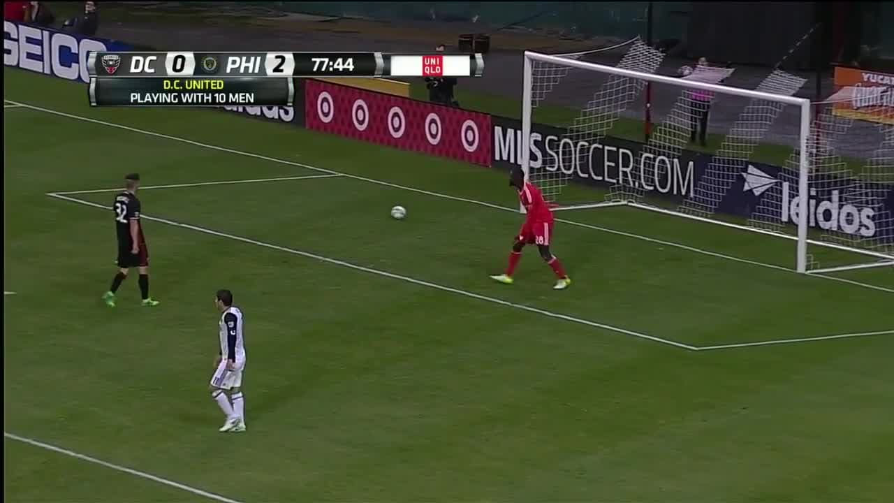 El atacante del Union aprovecha el espacio cedido por el D.C. United para marcar el tercero del Philadelphia Union, que vence 3-0 en la capital estadounidense.