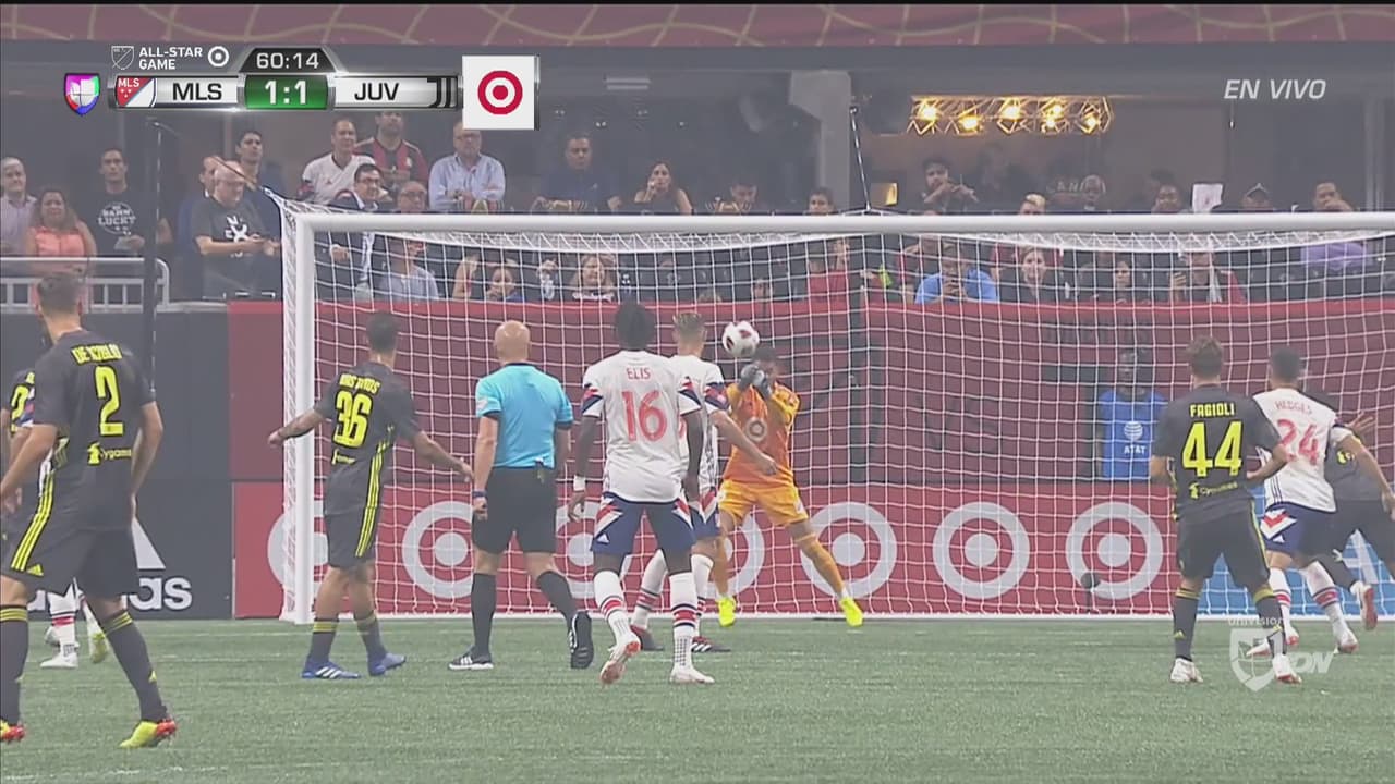 El volante de la Juve sacó potente disparo que el portero norteamericano tuvo que rechazar con los puños para evitar el gol.