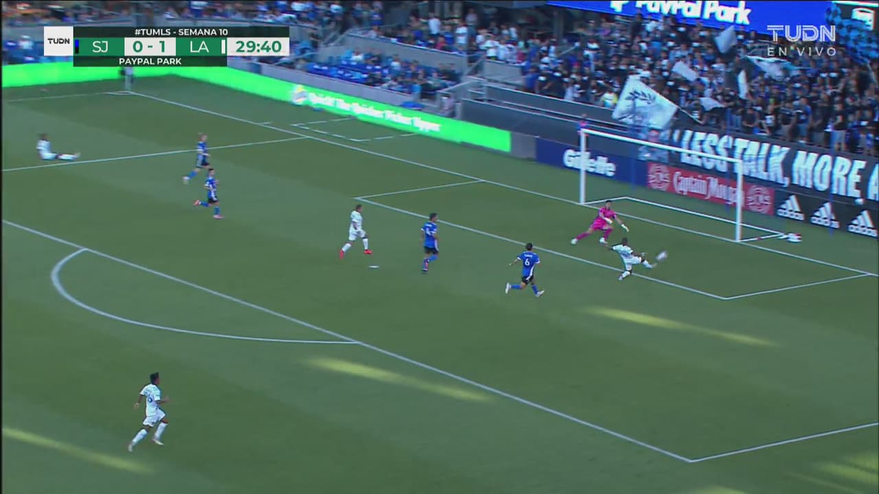El mediocampista del LA Galaxy mandó servicio perfecto a segundo poste y Samuel desperdició al minuto 29.