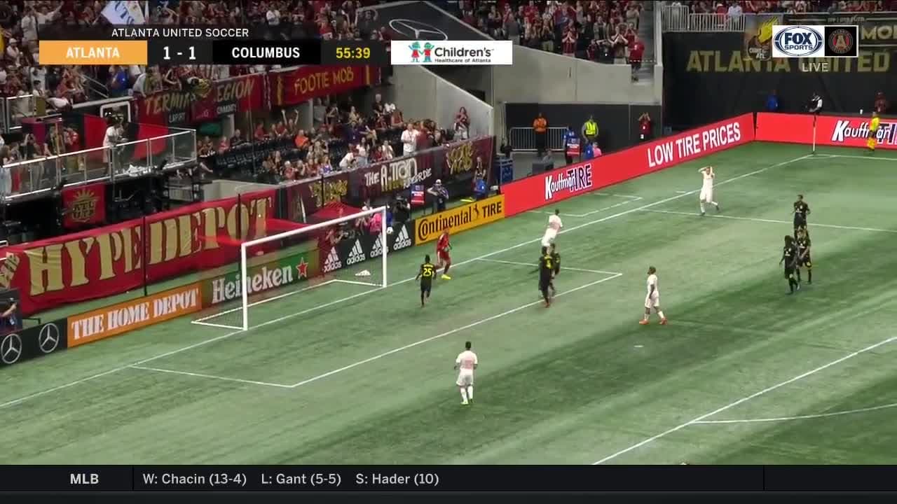 Zack Steffen evitó el segundo gol de Atlanta al atajar el potente remate de pierna izquierda del paraguayo Miguel Almirón.