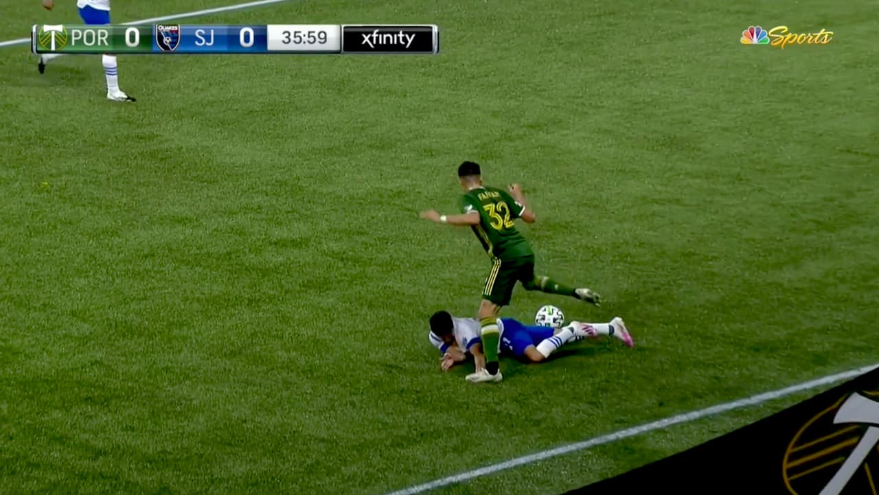 El mediocampista de San Jose Earthquakes, Carlos Fierro, recibió un fuerte pisotón del defensa de Portland Timbers, Marco Farfan. Fierro se incorporó al partido con un vendaje en la mano.