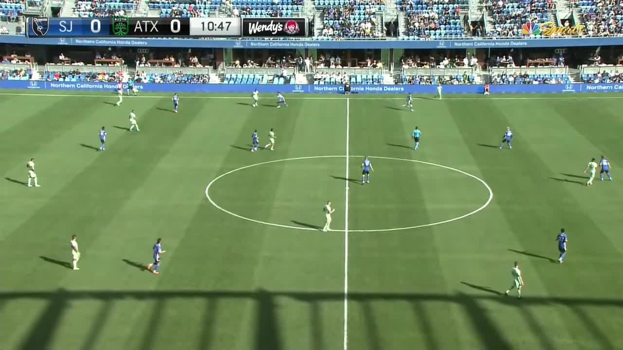 El argentino controla el balón y luego lo hunde en la red, con un fuerte remate para el 1-0 sobre los San Jose Earthquakes