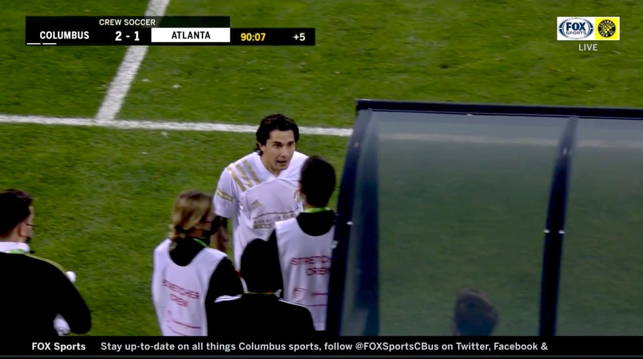 El defensa argentino recibió una segunda tarjeta amarilla en la recta final del partido y antes de abandonar el terreno de juego empujó a un miembro de la banca de Columbus Crew.
