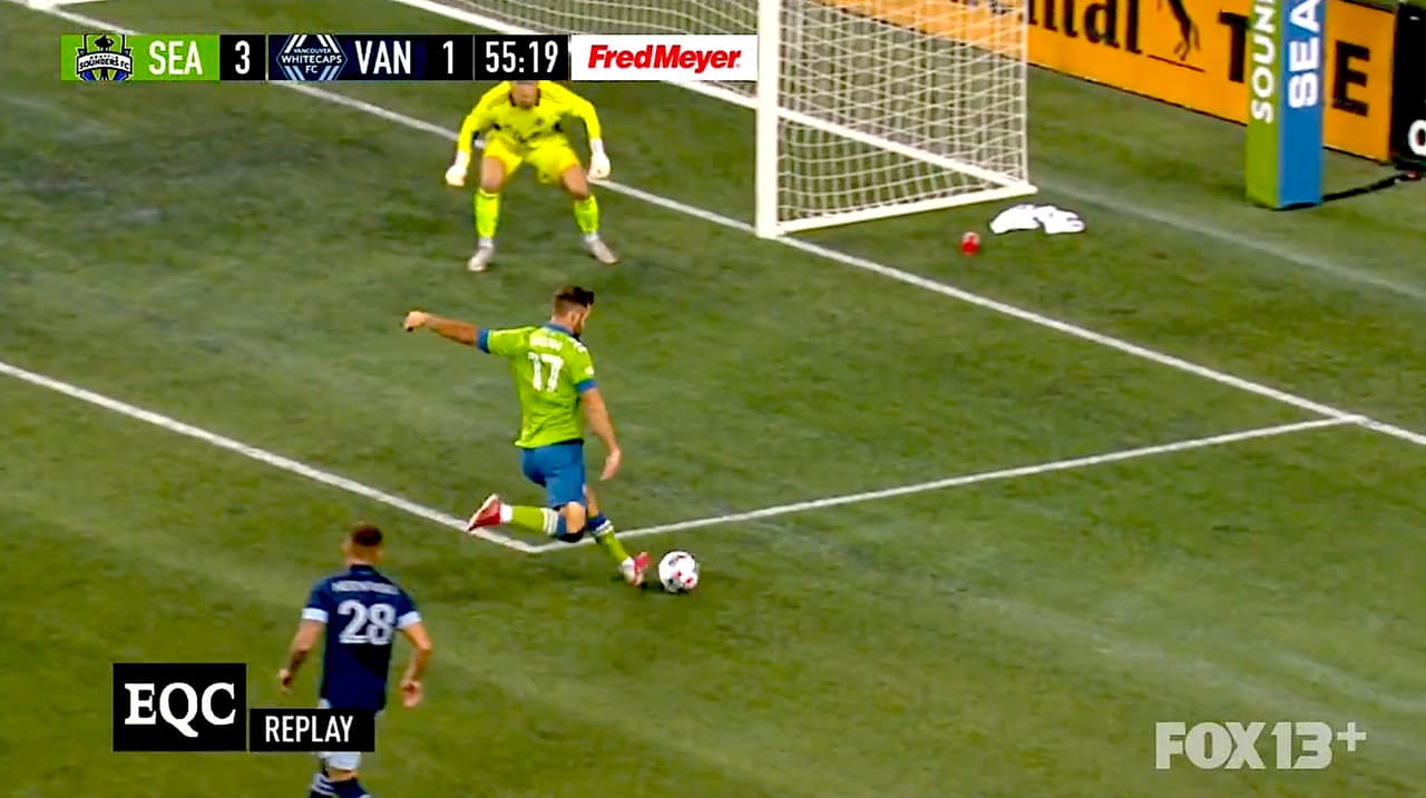 Seattle Sounders fabricó una gran jugada y marcó el 3-1 ante Vancouver Whitecaps al minuto 55, el delantero Will Bruin anotó su tercer gol de la temporada.