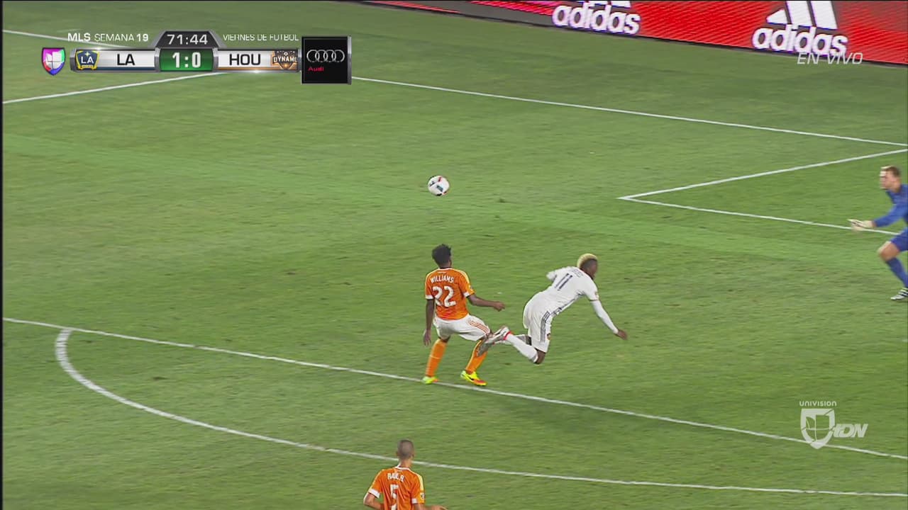 En una jugada polémica, Zardes cae con empujón de Williams, pero el árbitro no marcó ni falta.