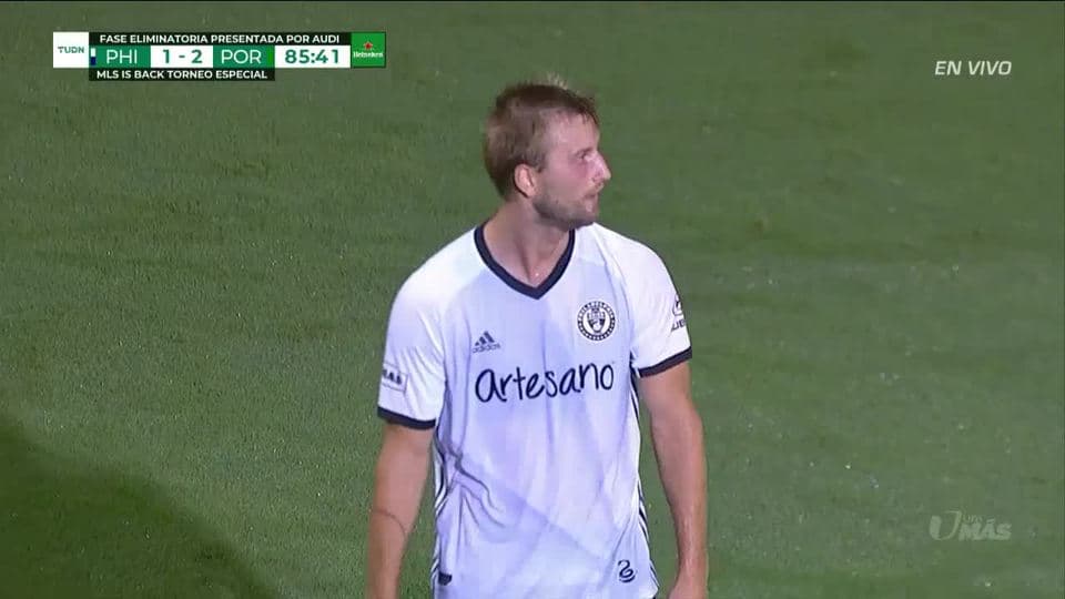 Fuera de juego de Brenden Aaronson: El juez de línea levanta el banderín y anula la jugada. on August 5, 2020
