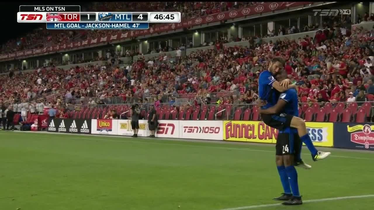 La defensa de Toronto cometió errores que le costaron muy caros al arranque de la parte complementaria ante Montreal, y el joven Hamel anotó el cuarto del Impact.