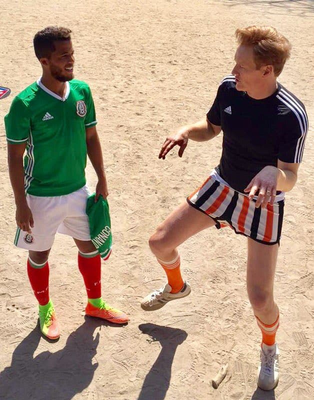 Today I played #fútbol with superstar @OficialGio. Here's my signature move: "Running with Limp Hands." #ConanMexico pic.twitter.com/TWICSS8Dxg