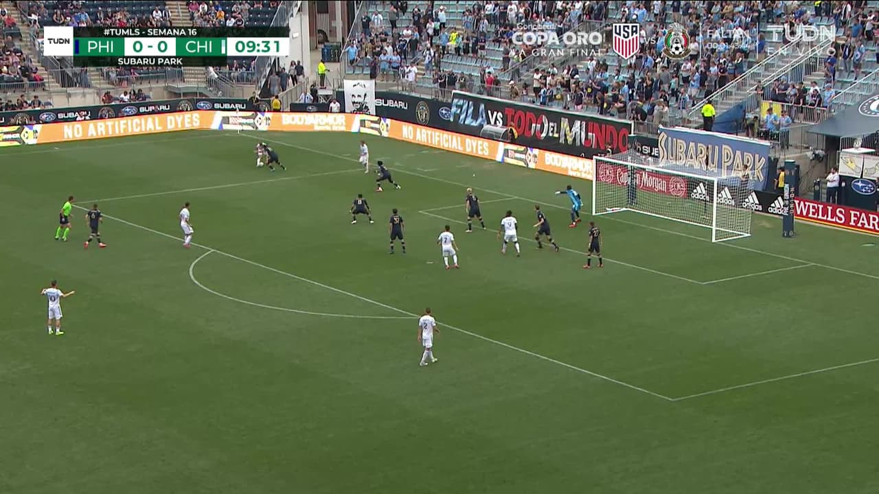 ¡Gol! Philadelphia Union 0| Chicago Fire 1. Przemyslaw Frankowski (Chicago Fire) disparo de cabeza desde el centro del área disparo rastrero| junto al palo izquierdo. Asistencia de Boris Sekulic con un centro al área.