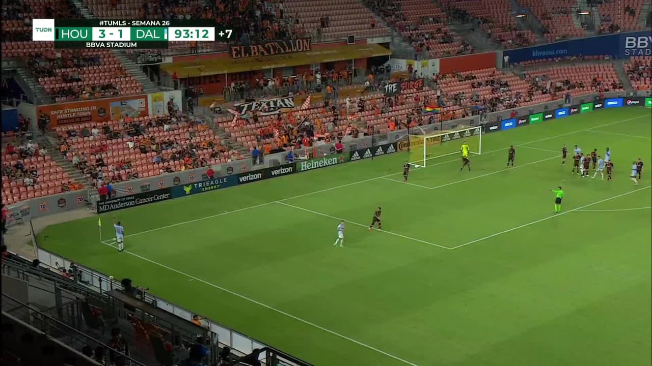 ¡Gooooool! Houston Dynamo 3| FC Dallas 2. Jáder Obrian (FC Dallas) remate con la derecha desde el lado derecho del interior del área tras un saque de esquina.