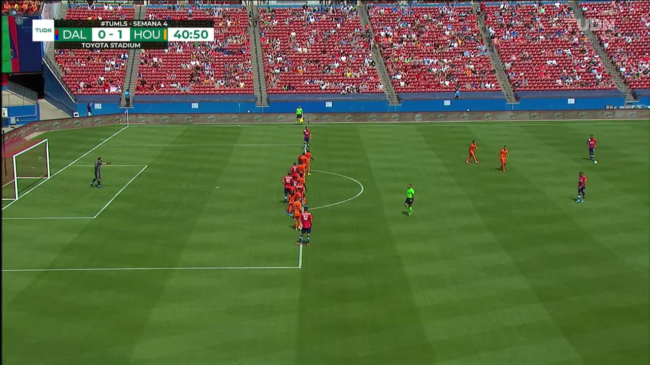 ¡Gol! FC Dallas 1| Houston Dynamo 1. Jáder Obrian (FC Dallas) Disparo con la derecha desde muy cerca disparo rastrero| junto al palo izquierdo tras el cobro de una falta.