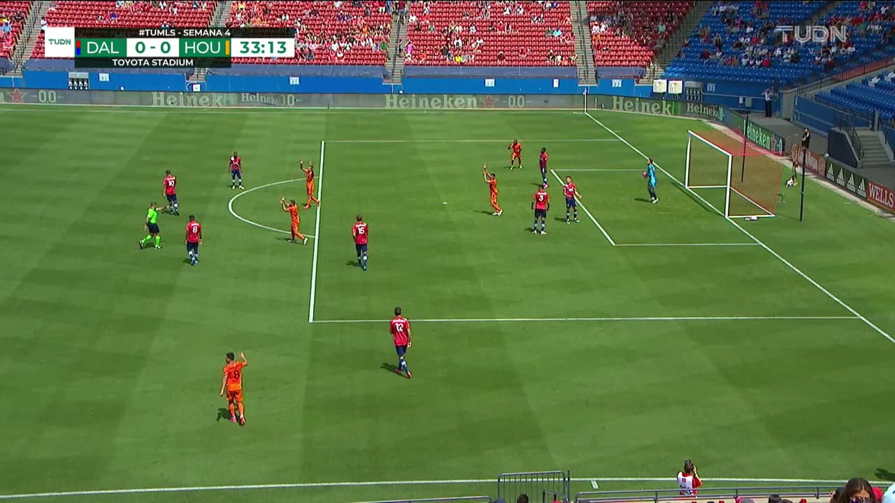 ¡Gol! FC Dallas 0| Houston Dynamo 1. Fabrice-Jean Picault (Houston Dynamo) convirtió el penalti Disparo con la derecha por el lado derecho de la portería.